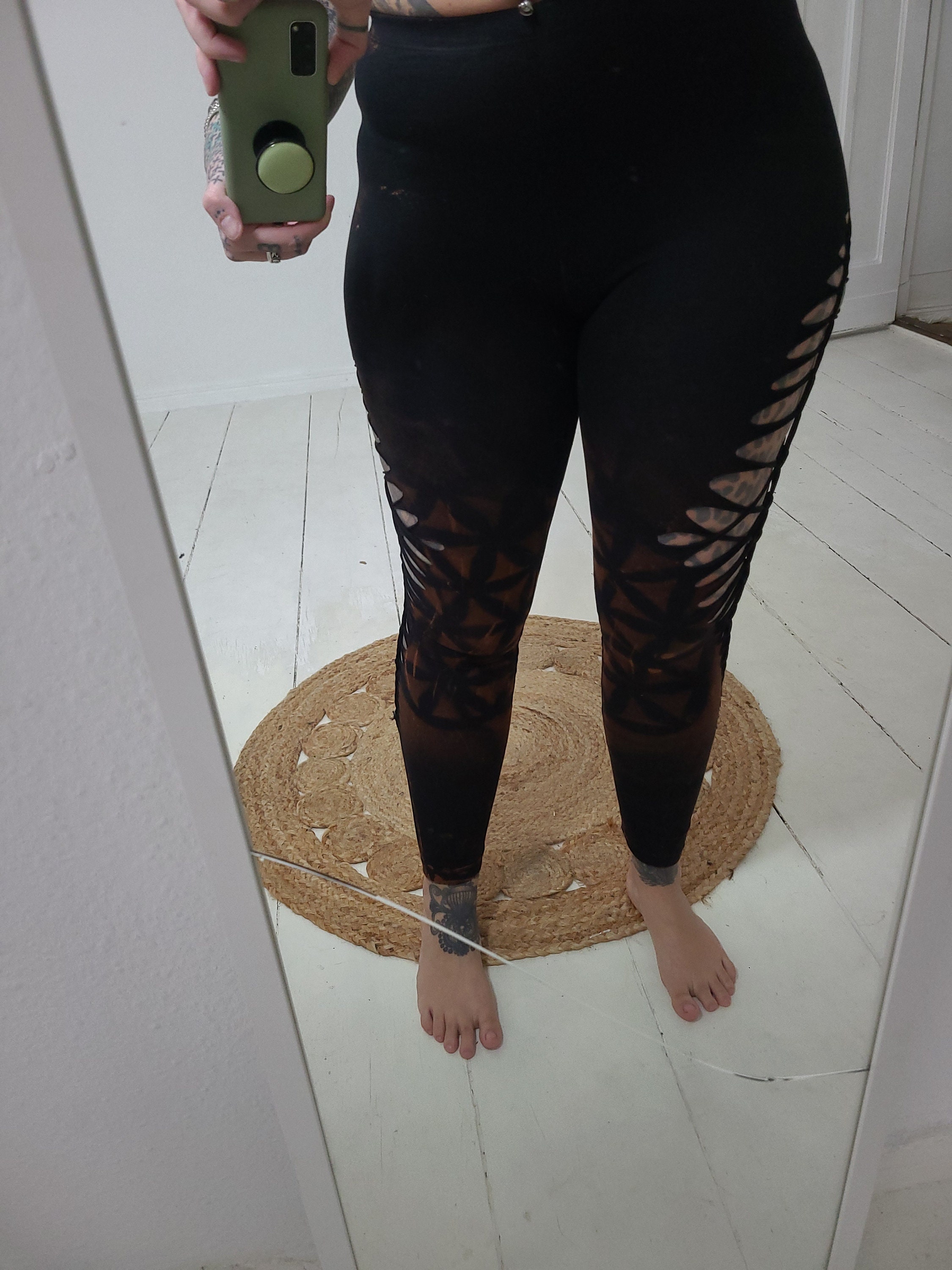 Hand-dyed and hand-cut leggings.